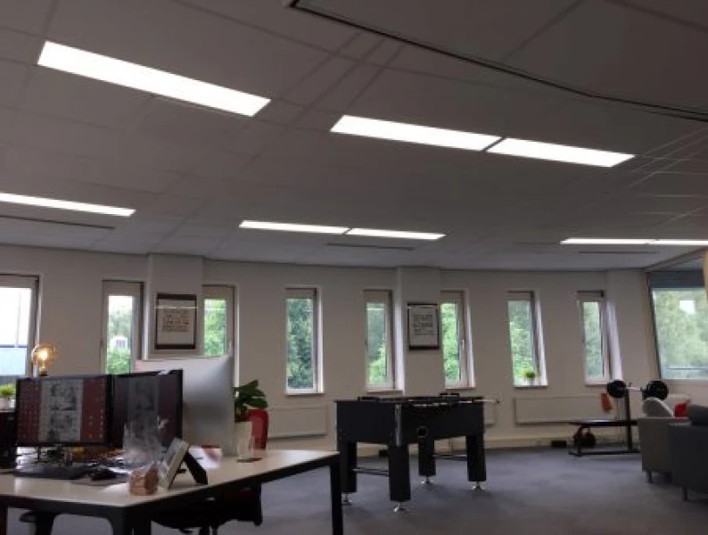 Op de foto’s is een kantorenpand in Deventer te zien waar we alles ombouwen naar LED.